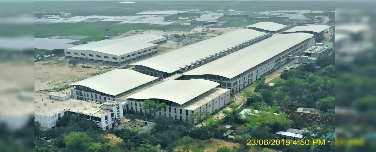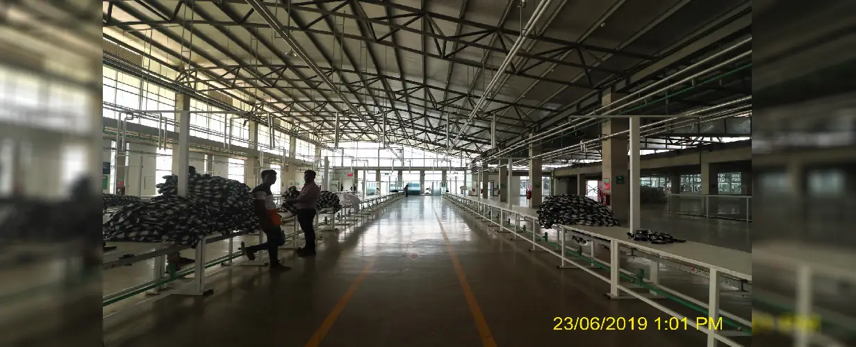 The WAVE is a constructed representation of the surrounding landscape and the emerging manpower or the dedicated ‘APPAREL ARTISTS’. This is a building which is principally designed in passive manner. The natural daylight, air circulation and ventilation is achieved by architectural solution up to 40%.The building is saving 20% of its water consumption through Rain Water Harvesting and STP. 33% of energy is being saved by PV panels and natural ventilation. Roof has its own innovative support system by tetrahedron truss as beam. Central Ventilation Core has been designed for hot air dispatch, rain water and roof drained water storage and sequentially passing to the underground tanks for curing and recharge. And sky lights give the calculated day lighting in the Green Atrium. The south facing façade is mostly open to natural ventilation and designed with vertical Fins and Wings to defuse direct air-flow and light necessary for production/ machine lines.