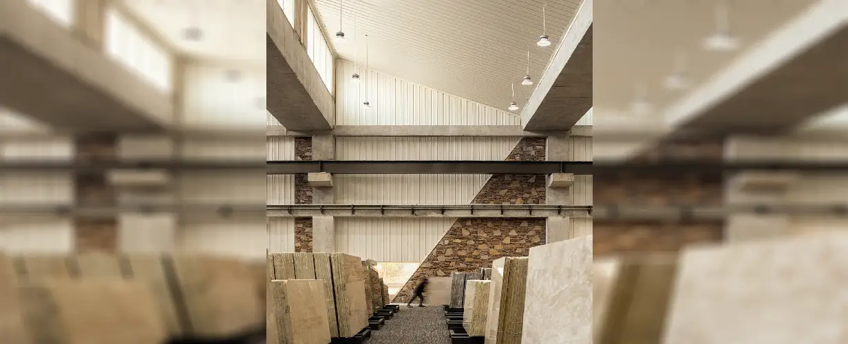 Special Features: Functionality drives the design; the linear production process is used as a design determinant to avoid the workers being forced to do manual lifting, prone to accidents, which is otherwise a common process. Two people can therefore, bring in a 25 Tonne block from one end, process it, display it, and dispatch it on their own. Architecture has opted to campaign human life; by forcing better working conditions, physical and emotional well-being, creating comfort and thereby ensuring better communities and a richer built environment.