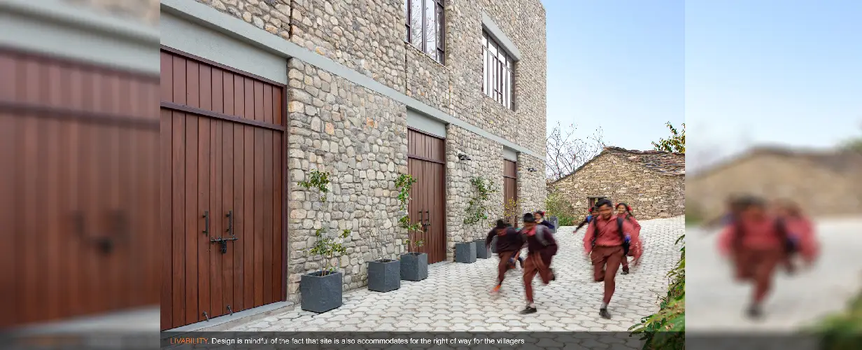 Liveability: The project employs 65 workers, which directly or indirectly supports 75% of the village households. The provision of large aangans (gathering spaces) promote the culture of the region which is that of a close-knit community.