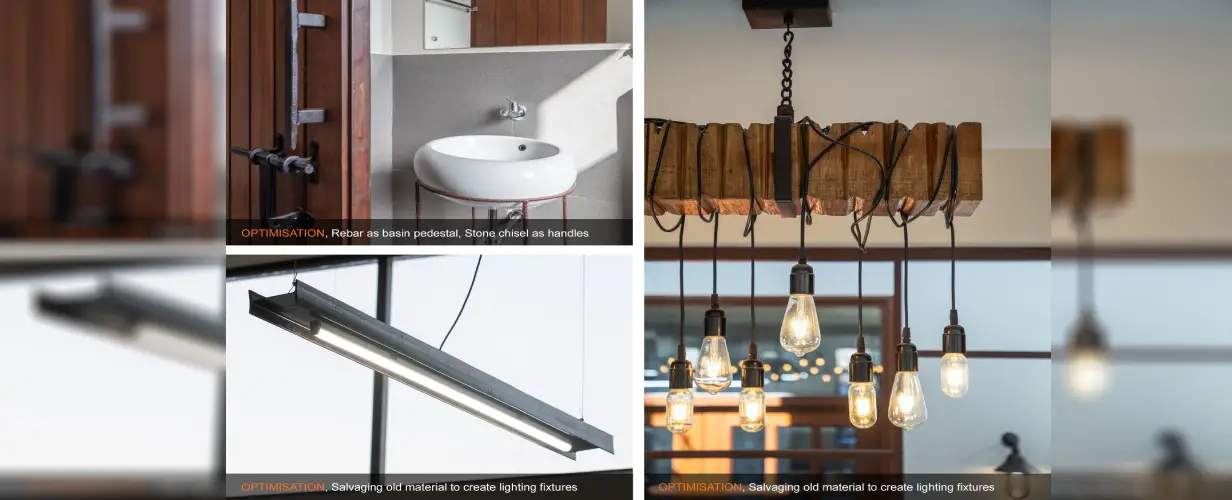 Net Zero Waste: repurposed fixtures, use of existing foundation & top rubble. All leftover and waste-materials at site have been repurposed and reused throughout. All by-products of the facility are either reused or used for composting.