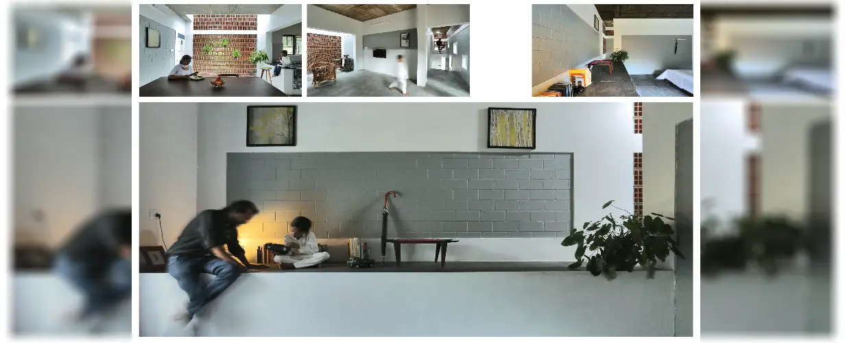 The project was an effort to redefine the popular social notion of quantity of space over quality of space. In a society, which considers number of rooms as a criterion of a big house, this one attempts to give each space activity & time based multiple existences. The inner primary activity spaces flanked by thermal & activity buffers- a level navigating step corridor & courts- offer potential spatial appropriation for the users.