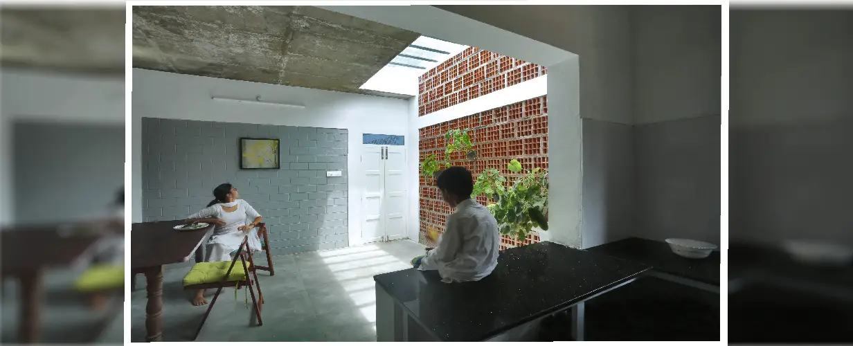 The house has a temperature condition of about 5-7 degrees less than the surrounding houses due to usage of porous jalleys, weinerberger materiality & thermal buffers.