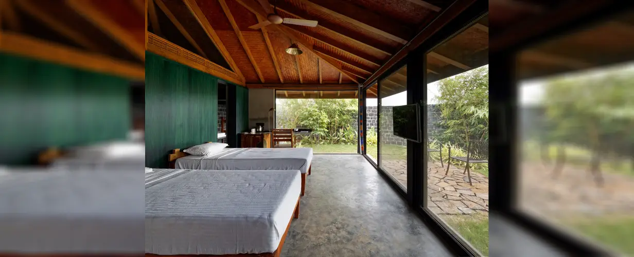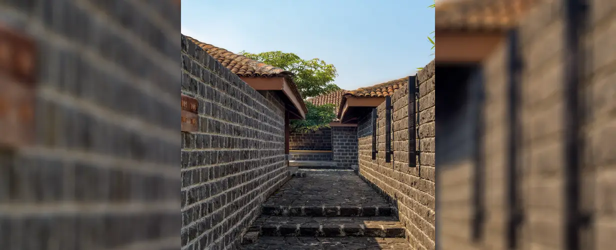 We manifested the thought of learning everything from the immediate surroundings –a sensitive lifestyle followed by the villagers, where handcrafting was the primary way of doing things, to materials and technique of construction, all coming from the immediate context. Materials like stone, wood, and traditional Indian clay roof tiles -which are one of the most natural materials- respond well to the local climate and alter the spatial experience of the resort. The varying volumes animated by light, shadow and the texture of the materials, evoke strong emotions and deep experiential memories.