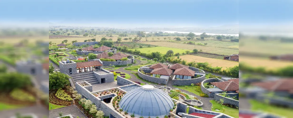 The site is located near Trimbakeshwar, within the Sahyadri mountain range. Located in a small village called ‘Beze’, the site is in the vicinity of a number of dams and opens up to serene views of the Sahyadris. This enables a mostly cool, dry and pleasant weather for the region with ample rainfall. This topography has created a unique micro-climate in the village, with temperatures 5 to 6 degrees lesser than the urban areas nearby.