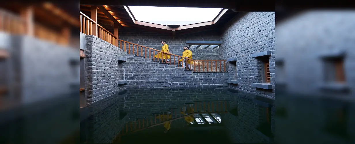 A conscious effort was put into understanding the evolution of a typology followed by dharamshalas, sarai, temple complexes, and Hammams and going back till the great bath in Harappa. Historically, these spaces used to warmly welcome the traveler, provide them with a resting place and food, and also healed them. This typology transformed into a modern-day healing spa and resort which we see today. Reinterpreting the same in modern times, the idea is to create a space that helps one break away from their busy, mundane life and reconnect with nature and the inner self.