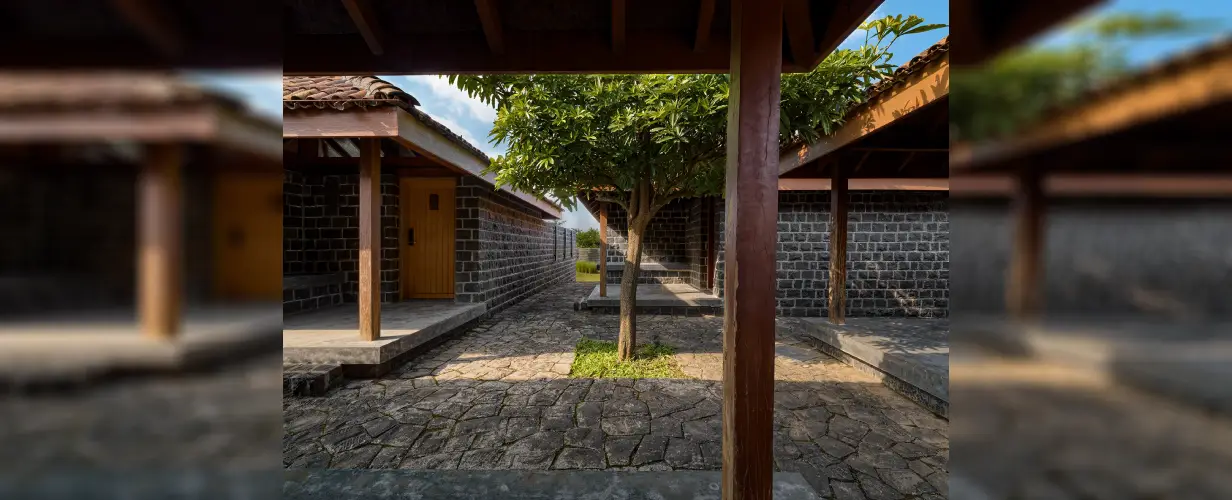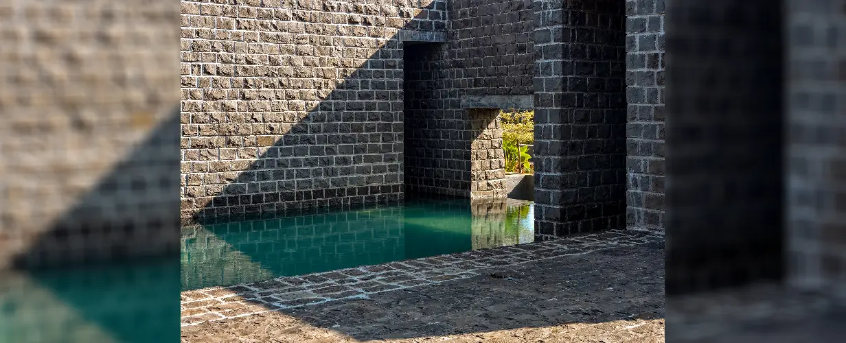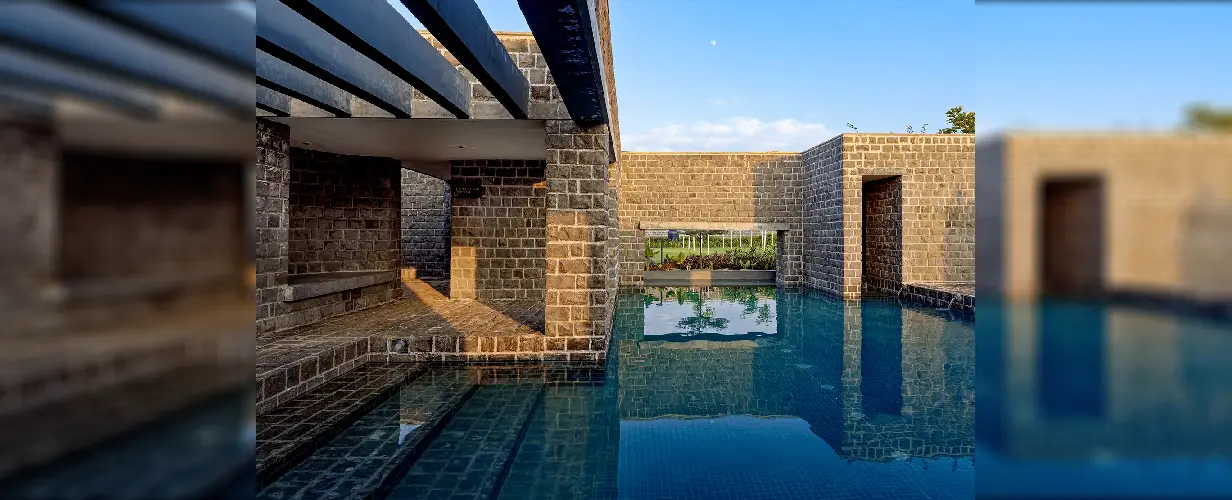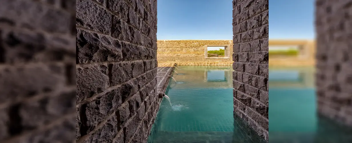 - Water bodies are also made in local basalt stone and minimal use of ceramic tiles to reduce the embodied energy.