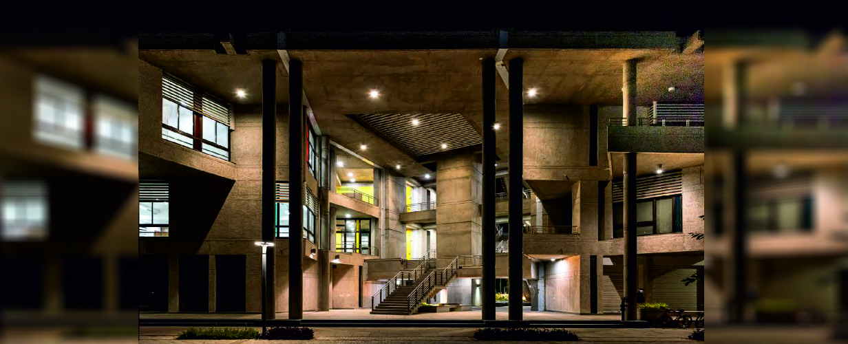 students lounge and alumni offices, bank, restaurant, health centre and recreational multipurpose hall. This facility has been conceived as one of the most important buildings of the entire campus attributed to vibrancy of student campus life. Though the activities planned will work throughout the