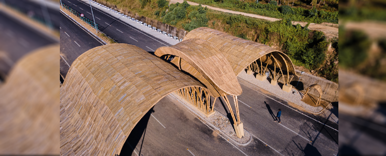The project was built as the entry gate to the new Donyi Polo airport, located in Itanagar, Arunachal Pradesh. Through the use of natural materials we hope to offset the impact of the air travel, which is considered to have one of the greatest influences in carbon emissions.