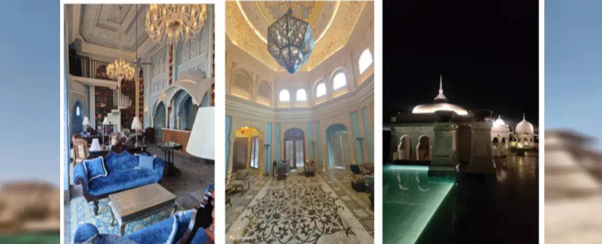 becomes the male part of the palace or the Mardana. The newer building- Raffles, being the softer and feminine in its