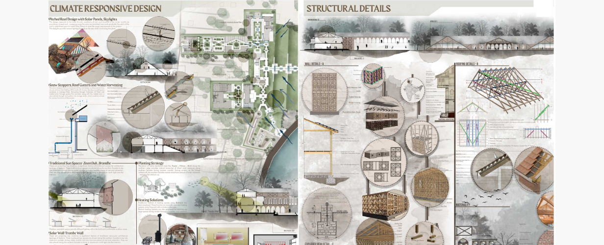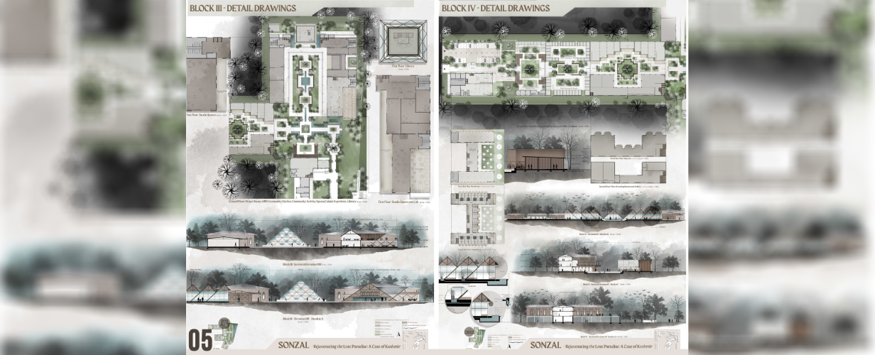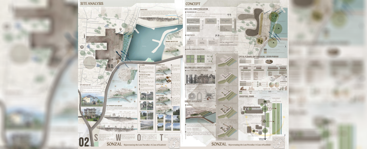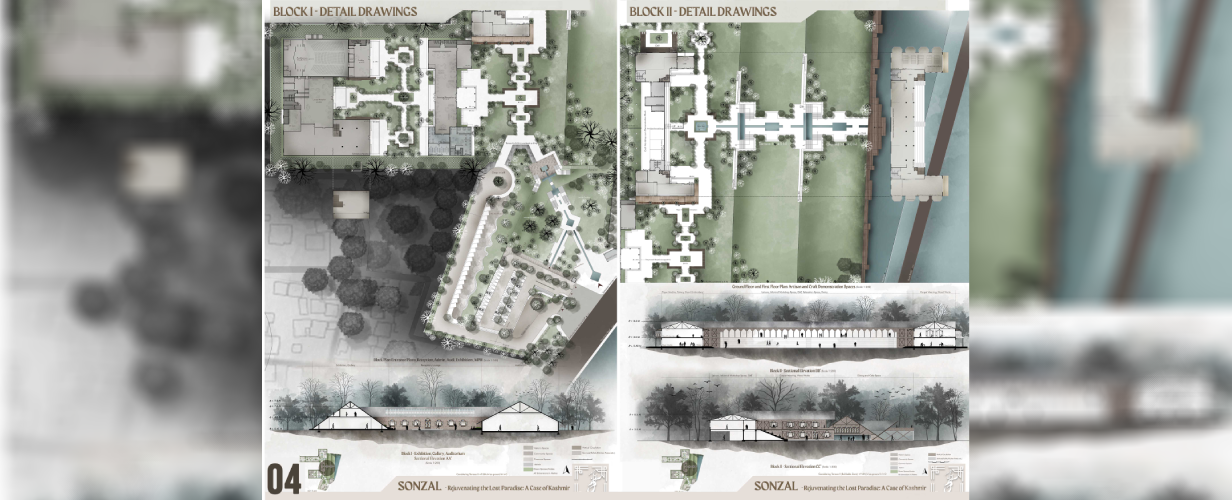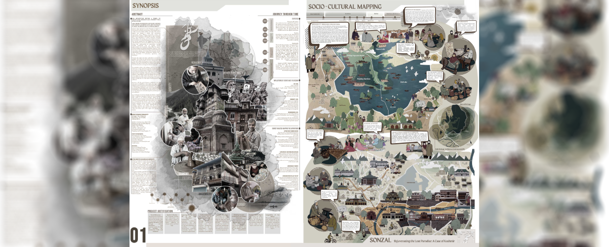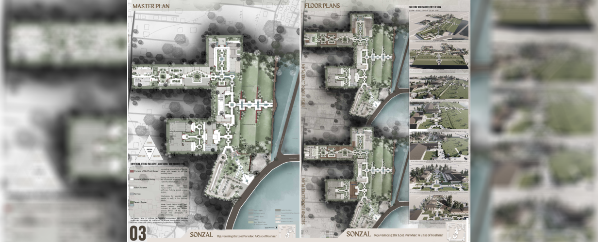 The thesis project, Sonzal – Rejuvenating the lost Paradise: A Case of Kashmir focused on the cultural rejuvenation of the Kashmir region, falls predominantly under the category of Thesis with High Social Relevance, with elements of Innovation, Originality, and World Orientation interwoven throughout.